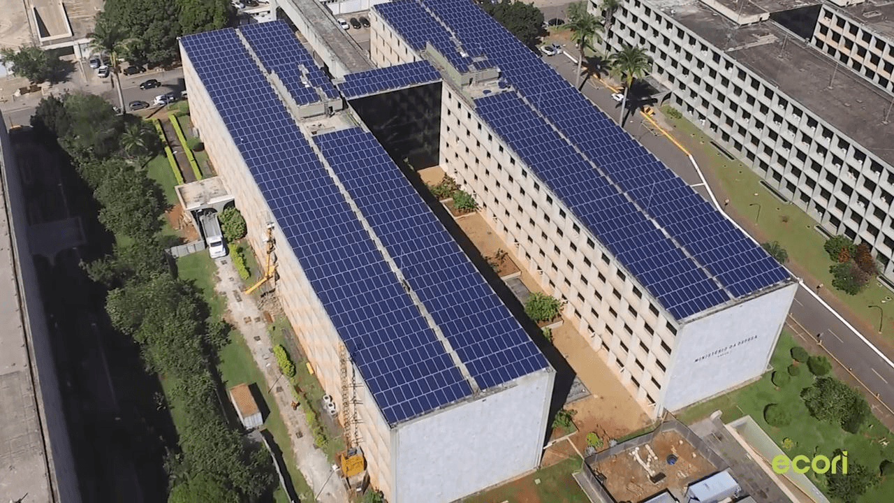 Figura 3 – Sistema FV conectado à rede instalado no prédio do Ministério da Defesa com rede reticulada e implementação do zero grid. Fonte: Renova Engenharia.