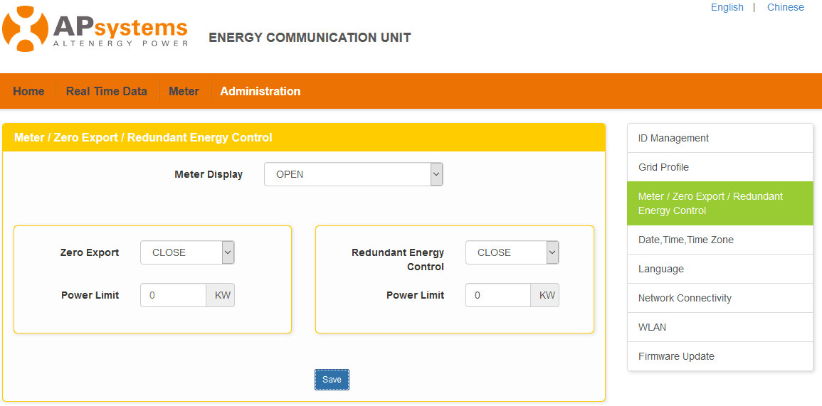 Existem diversas opções no mercado brasileiro de inversores fotovoltaicos capazes de controlar sua potência de saída e que, complementado com um medidor inteligente, é capaz de executar a função de limitação de exportação. Por exemplo, os microinversores APsystems são capazes de executar a função de limitação de exportação. Essa função pode ser aplicada em redes monofásicas e trifásicas com o uso da ECU-C e transformadores de corrente (TC’s).